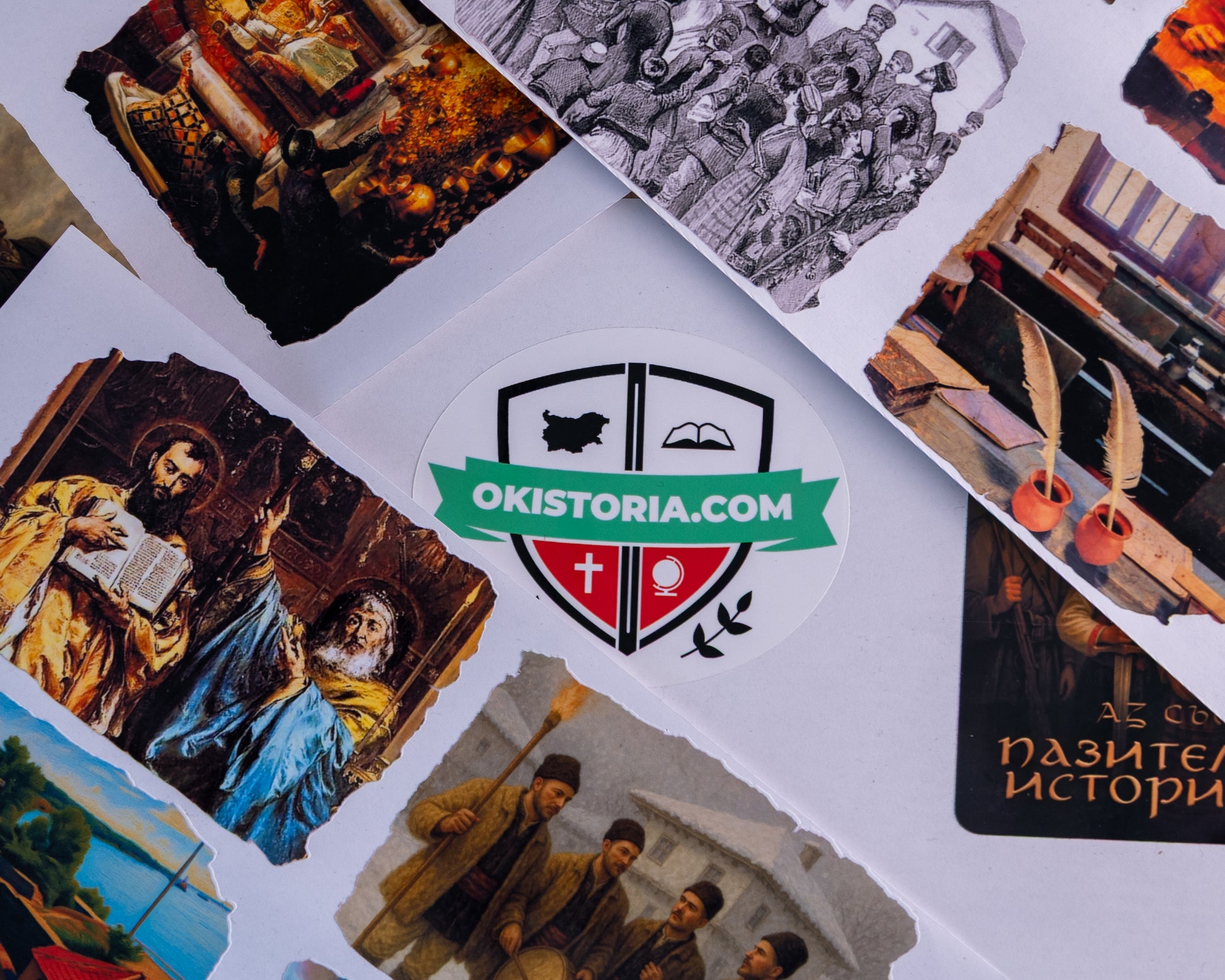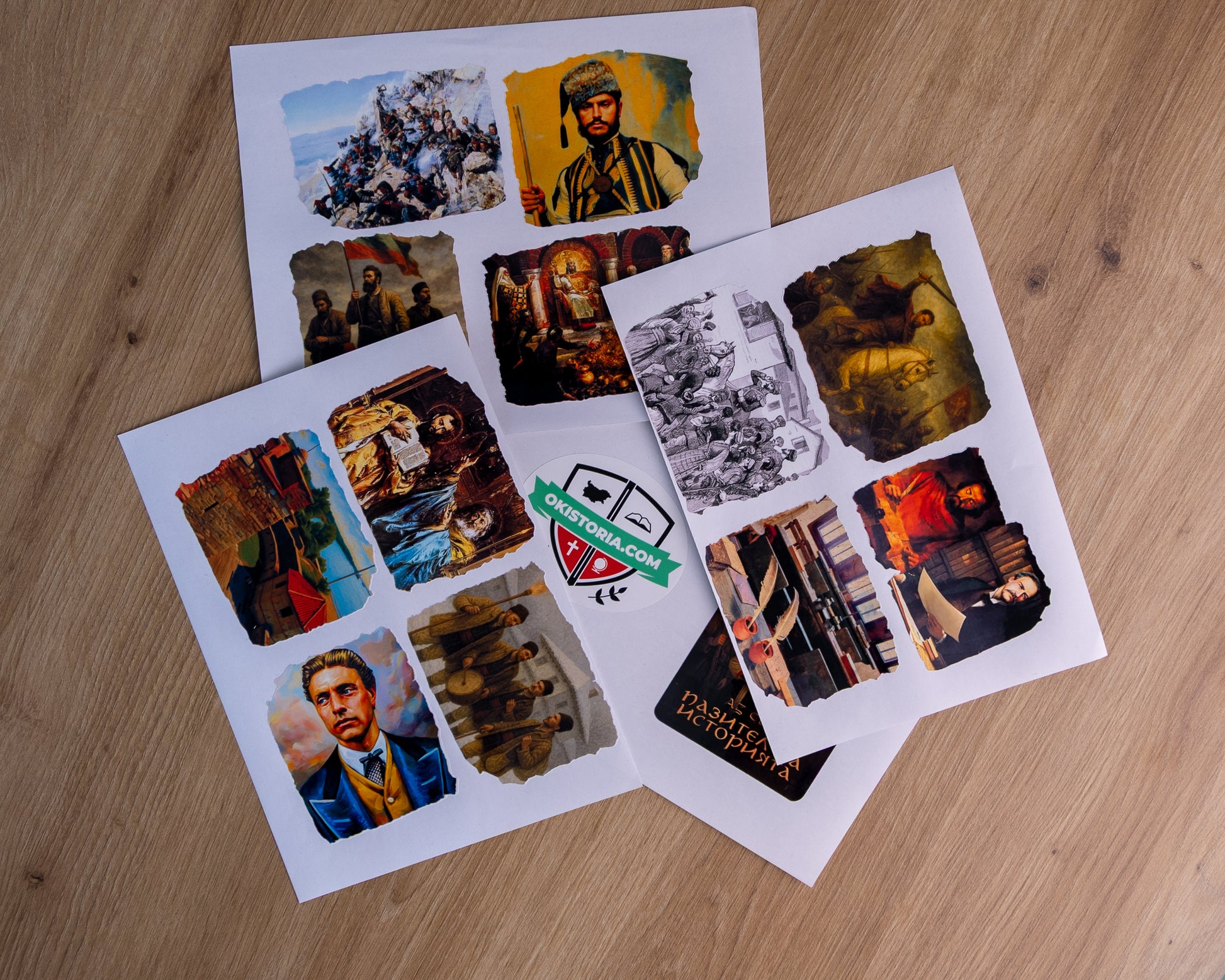- 15 цветни стикера с илюстрации на български герои, крепости, знамена и символи от поредицата „Пазителите на историята“.