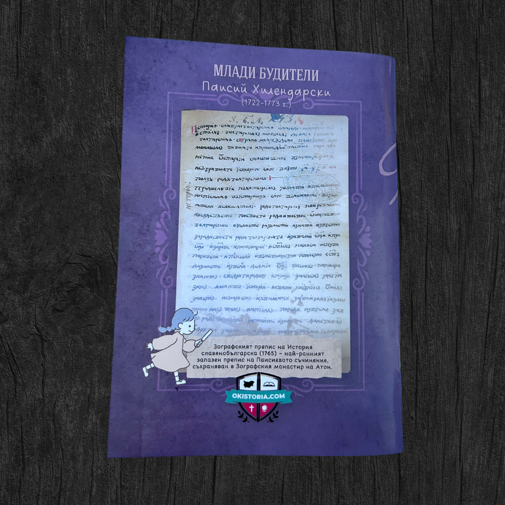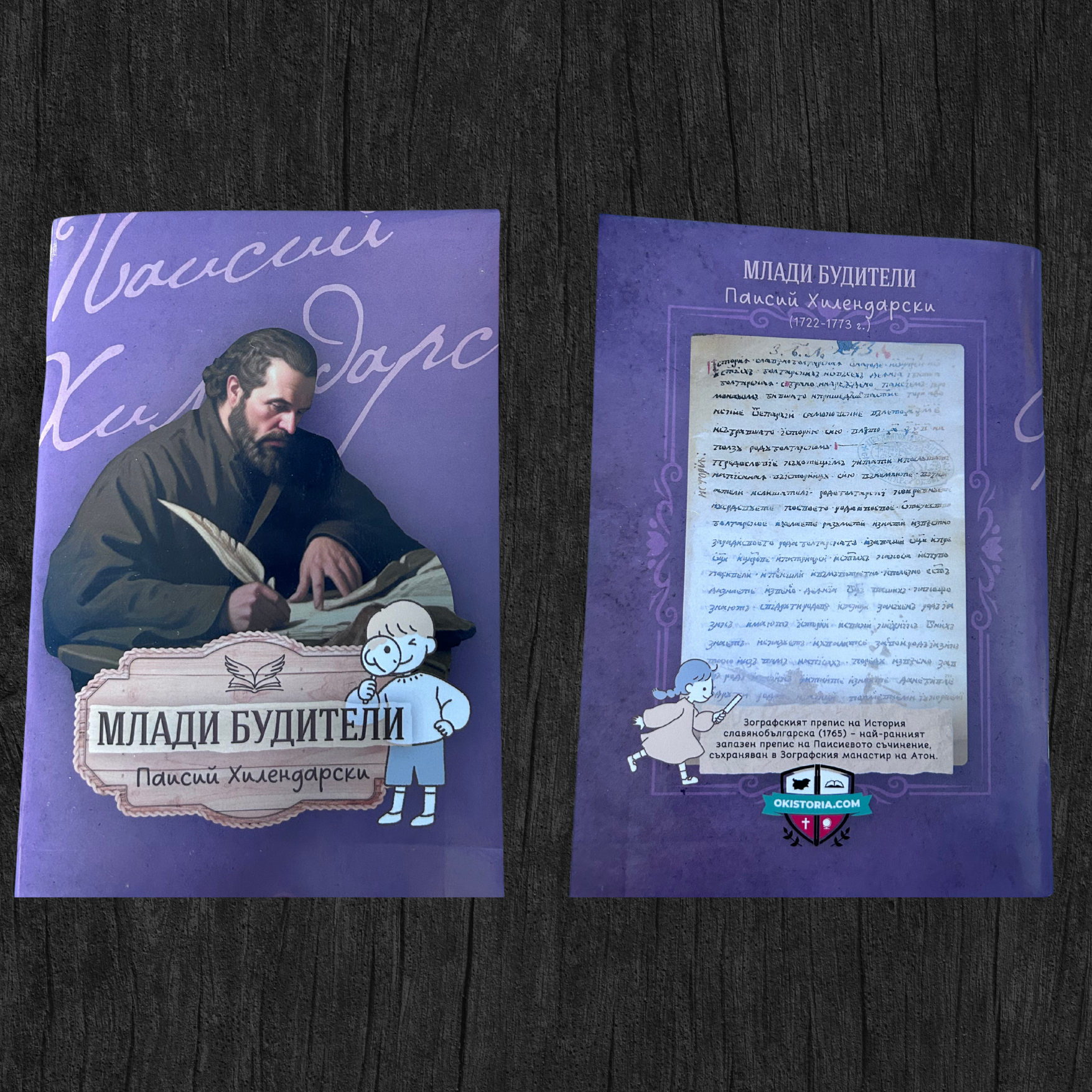 Тази тетрадка от колекцията „Млади Будители“ е посветена на Паисий Хилендарски – автора на „История славянобългарска“ и първия, който пробуди самосъзнанието на българския народ.